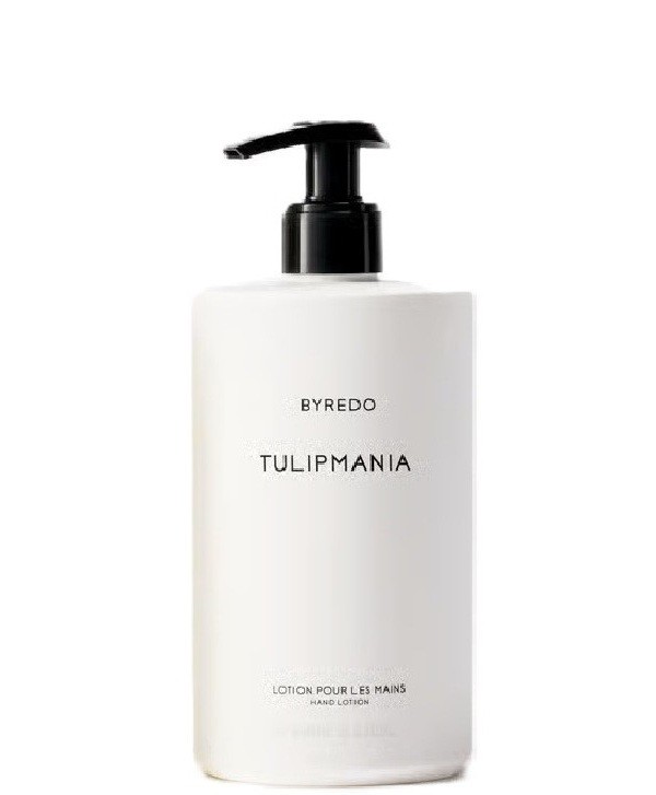 Tulipmania Lotion pour le mains di Byredo è una lozione ultraleggera, ad assorbimento rapido che lascia le mani morbide e delicatamente profumate con note fresche di fresia e tulipano abbinate ad un avvolgente nota di legno chiaro.