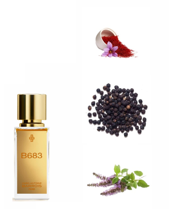 B683 Eau de Parfum è il primo profumo ideato da Marc-Antoine Barrois e basa il suo disegno sull' eleganza senza tempo tipica anche delle sue creazioni di couturier. E' un invito ad esplorare l'arte contemporanea a lui cara. La fragranza esplode con note di pepe nero, di zafferano, dl peperoncino e di noce moscata che incontrano nel cuore elegantemente le note della violetta, dell'ambra, del muschio e del cisto assoluto. La raffinata combinazione di essenze legnose e sensuali note speziate viene fissata sulla pelle dalle finali note di muschio, patchouli, sandalo e ambroxan che lo rendono un profumo inebriante e sobrio. Elegantissimo