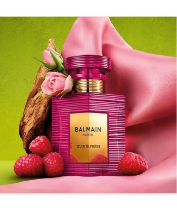 Cuir Elysee Eau de Parfum di Balmain è una fragranza che vuole reinterpretare il tema cuoiato come haute couture olfattiva: la forza del cuoio che apporta carattere e profondità e tocchi fruttati e floreali che ne esaltano raffinatezza e sensualità.La fragranza si apre con note accese di lampone succoso e pepe rosa brillante, per lasciare spazio ad un cuore fiorito con petalia e gelsomino verde., fiori luminosi che regalano leggerezza alla scia cuoiata. Il fondo si svela nel tempo con note di sandalo cremoso e morbido, avvolgendo la composizione di eleganza e persistenza.